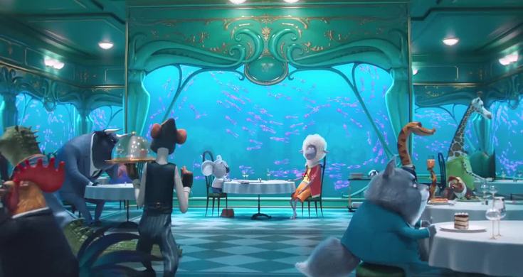 Les Calmars is a restaurant in Sing. The restaurant is most notable for its large presence of luminescent squids that are used for lighting purposes and ambience. HistorySingBuster Moon discusses plans to revitalize the Moon Theater by having a singing competition, to his friend Eddie's doubt. The two are kicked out of the establishment (with Buster being literally thrown out) after Buster brings in outside food and spills a bowl of soup all over a bull by accidentally flipping a fork into it. Love At First SightMiss Crawly and Jeff go out on a dinner date at the restaurant. Jeff orders a large meal and sticks Crawly with the bill. Notable Features