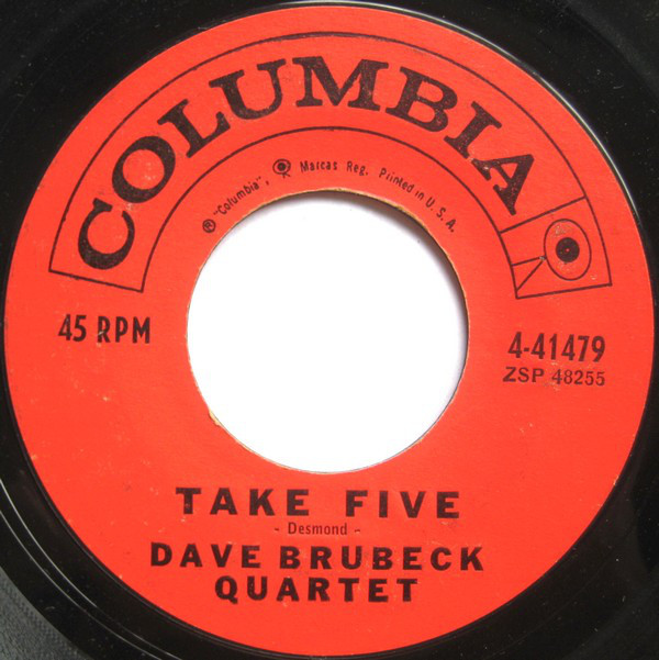 "Take Five" is a jazz standard written by Dave Brubeck Quartet alto saxophonist Paul Desmond, and originally recorded by the Quartet for their 1959 album Time Out. Created at Columbia Records' 30th Street Studio on July 01, 1959[1], a shortened version of "Take Five" was released as a single on September 21, 1959. After being reissued on May 22, 1961, "Take Five" became a surprise hit, peaking at No. 25 on the US Billboard Hot 100[2], No. 5 on the Billboard Easy Listening chart[3], and No. 6 on the UK Record Retailer chart[4].